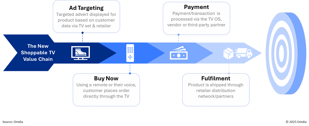 The most direct means of tying ad spend to actual purchases is, naturally, shoppable media. As TV and video incumbents move further down the marketing funnel, Omdia expects much more focus to be paid to directly shoppable TV advertising – an area already being explored by multiple major incumbent players.